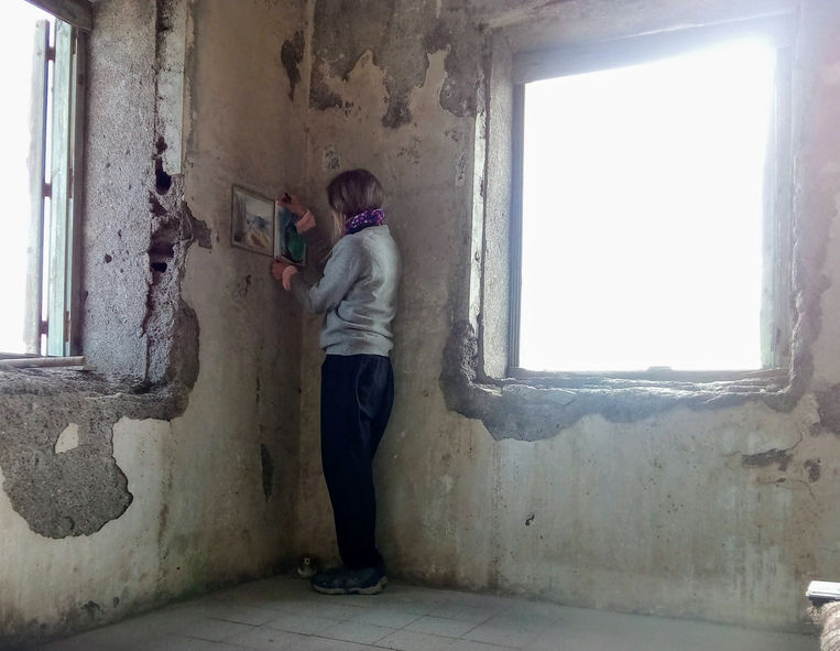 The exhibition was not planned, but the idea arose after I finished the second drawing at the end of the second day. What had been planned was that I would end up on the evening of the Resurrection to the Acramytes, so the idea of exposing the drawings there was a spontaneous follow-up. Given the conditions, the distance from the city, the climb to the summit and the day - Easter Sunday - the exhibition had no visitors at all, and a couple of tourists who came to the top did not want to enter the exhibition and I didn't insist, understanding how one climbs up a mountain top to find quietness.